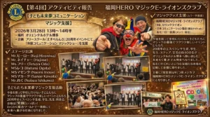 【第4回アクティビティ実施報告】 「子ども未来夢コミュニケーションマジック支援」 日時: 2026年3月28日(土)13時半〜14時半エリア: 福岡市博多区会場: オリエンタルホテル博多企画 フリースクール『えすぺらんさ […]