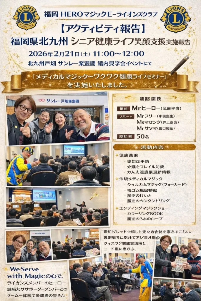 北九州戸畑地区 魔法社会奉仕活動で「シニア健康ライフ笑顔支援活動」を実施。