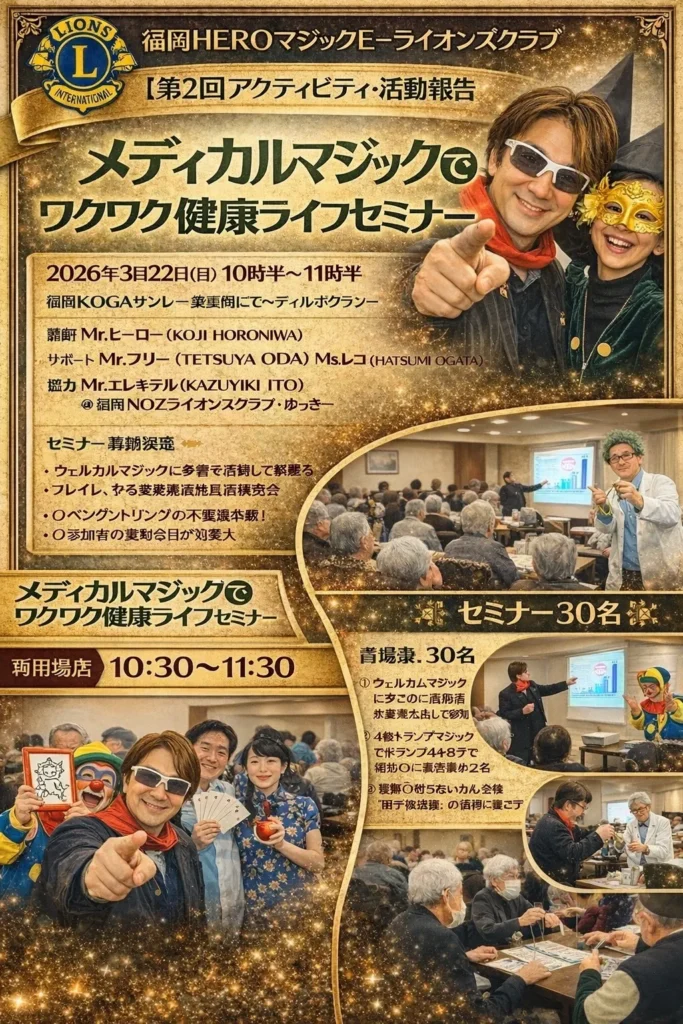 今後も健康セミナーと体験型マジックを通じて、多くの方々に笑顔と健康を届け、地域社会への貢献を続けてまいりましょう!